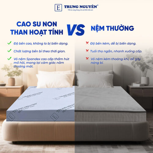 Đặc điểm nổi bật của nệm cao su non hoạt tính Trung Nguyên 1m4 x 2m