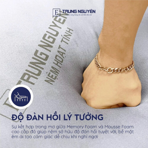 • Chất liệu Memory Foam nổi tiếng với độ đàn hồi tốt, giúp phân bố đều trọng lượng người nằm, nâng đỡ tối ưu cho các vùng như đầu, vai, lưng, hông và chân. Đồng thời bề mặt nệm còn ôm sát từng đường cong cơ thể, duy trì cột sống ở vị trí lý tưởng, từ đó giúp bạn có giấc ngủ thoải mái và giảm đau nhức xương khớp.