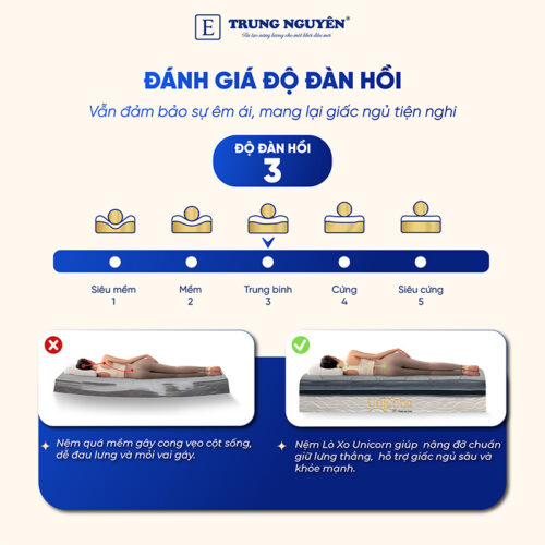 Dưới đây là các đặc điểm nổi bật của dòng sản phẩm nệm lò xo túi độc lập unicorn Trung Nguyên 1m2 x 2m: