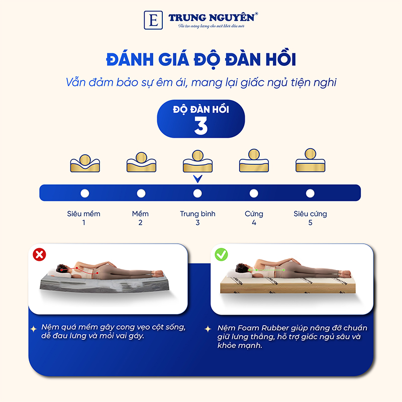 - Nếu bạn đang tìm một chiếc nệm vừa êm ái, vừa vững chắc và bền bỉ theo thời gian, thì Nệm Rubber Foam Trung Nguyên chính là lựa chọn lý tưởng cho giấc ngủ trọn vẹn mỗi ngày.